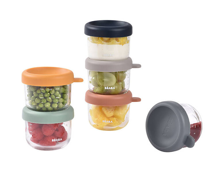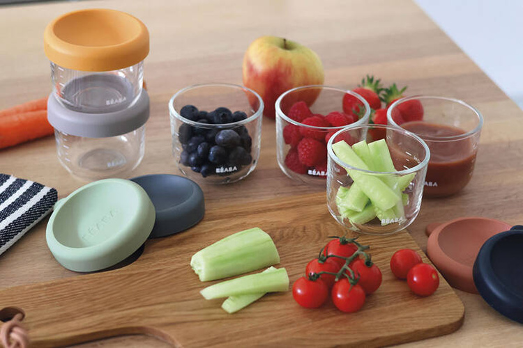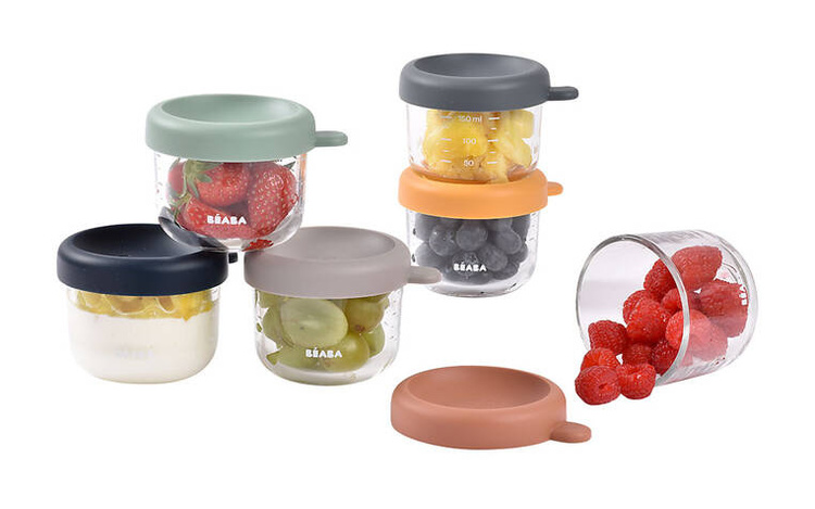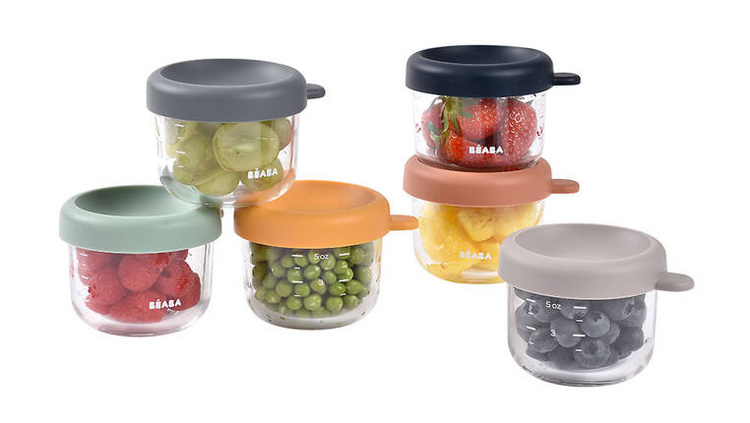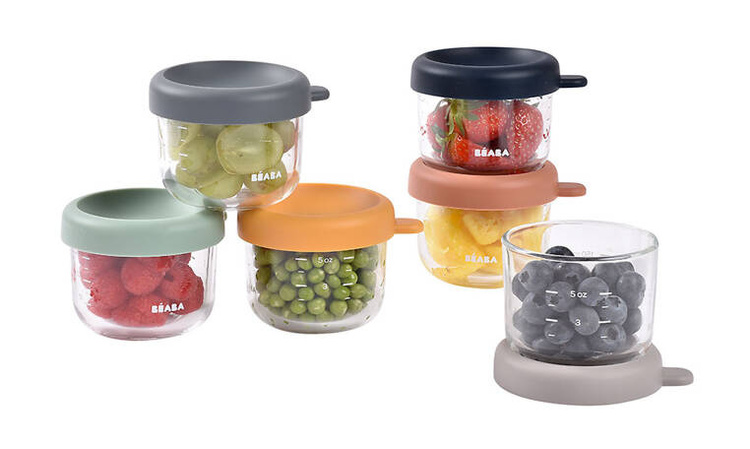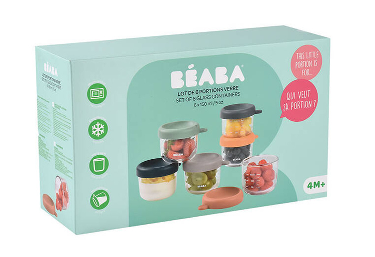 Zestaw sześciu słoiczków do przechowywania jedzenia francuskiej marki BEABA o pojemności 150 ml każdy, wykonanych z najwyższej jakości szkła. Bardzo odporne – nie plamią się i nie odkształcają. Można w nich nie tylko wygodnie przechować, ale i odmierzać taką ilość żywności, jaka jest potrzebna dziecku – każdy z nich ma widoczną miarkę w ml i oz – uncjach. Pojemniki nadają się do zamrażania oraz podgrzewania posiłków, także w mikrofali. Hermetyczne, miękkie silikonowe pokrywki doskonale przylegają do słoiczków, co pozwala zachować smak oraz aromat jedzenia, co więcej wyprofilowane są tak, że można stabilnie ustawić jeden na drugim, np. w lodówce czy spiżarni. Dzięki specjalnym uchwytom pokrywki łatwo jest zdjąć.