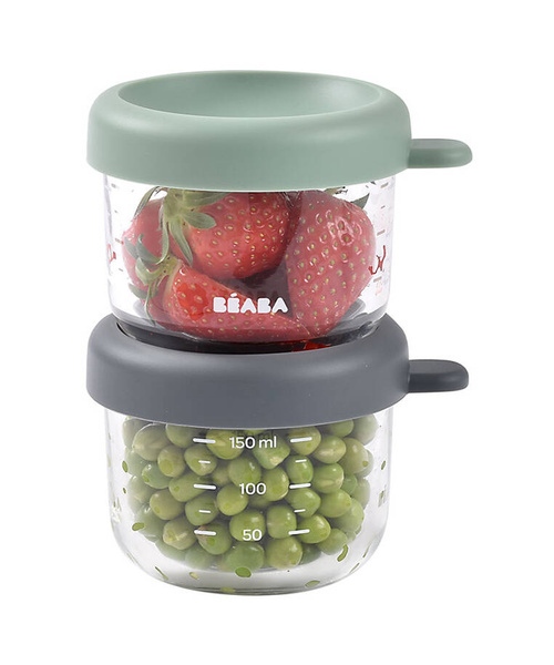 Zestaw dwóch słoiczków do przechowywania jedzenia francuskiej marki BEABA o pojemności 150 ml każdy, wykonanych z najwyższej jakości szkła. Bardzo odporne – nie plamią się i nie odkształcają. Można w nich nie tylko wygodnie przechować, ale i odmierzać taką ilość żywności, jaka jest potrzebna dziecku – każdy z nich ma widoczną miarkę w ml i oz – uncjach. Pojemniki nadają się do zamrażania oraz podgrzewania posiłków, także w mikrofali. Hermetyczne, miękkie silikonowe pokrywki doskonale przylegają do słoiczków, co pozwala zachować smak oraz aromat jedzenia, co więcej wyprofilowane są tak, że można stabilnie ustawić jeden na drugim, np. w lodówce czy spiżarni. Dzięki specjalnym uchwytom pokrywki łatwo jest zdjąć.