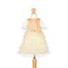 - kremowy kolor: top misternie haftowany z przodu i aksamitny z tyłu, z satynową lamówką, spódniczka z wielu warstw tiulu