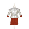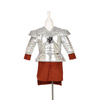 Kostium gladiatora Murmillo holenderskiej marki Souza! to przepiękne przebranie dla chłopca. Srebrna zbroja ma czarną aplikacją gryfa na piersi, pikowania imitujące metaliczne zgrzewy i nity oraz rozbudowane naramienniki. W wydłużonej dolnej części, a także przy makietach znajduje się fakturowany rdzawo-czerwony materiał. Kostium wkładany jest przez głowę i zapinany z tyłu na solidny rzep.