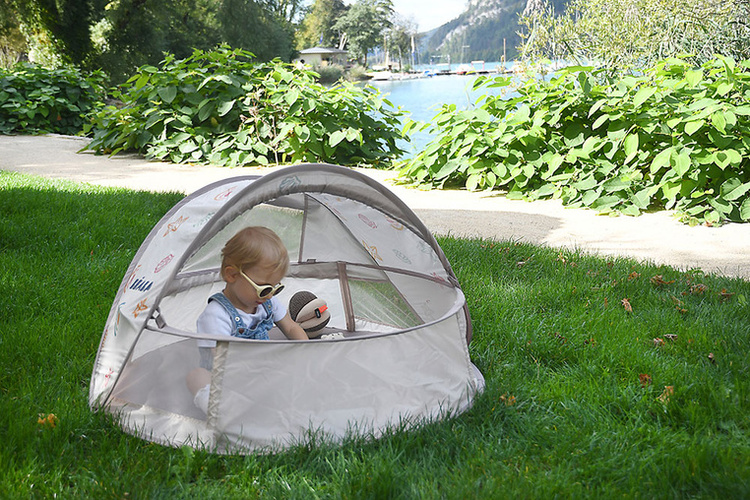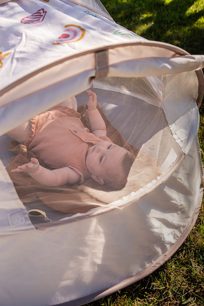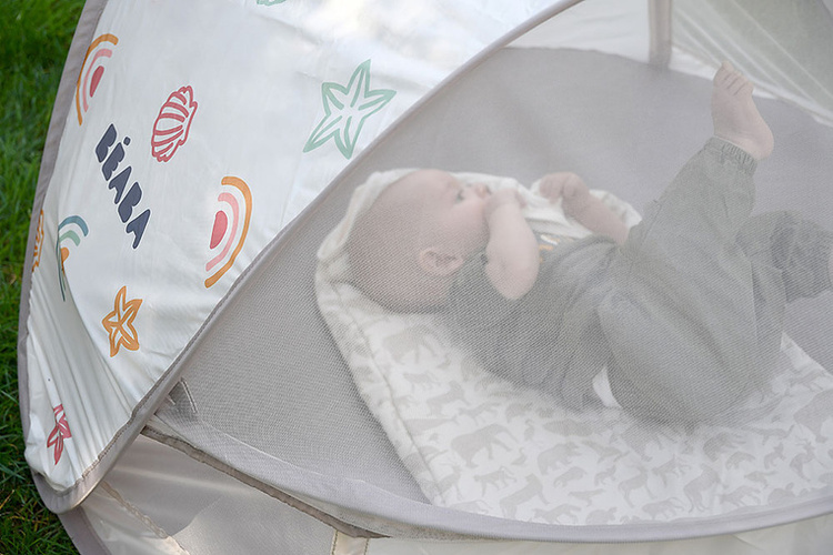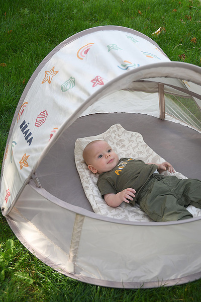 Kompaktowy i praktyczny namiot Breezynest francuskiej marki BEABA to idealne rozwiązanie na plażę, do ogrodu, parku, na balkon lub do domu – szczególnie podczas słonecznych, ciepłych dni.