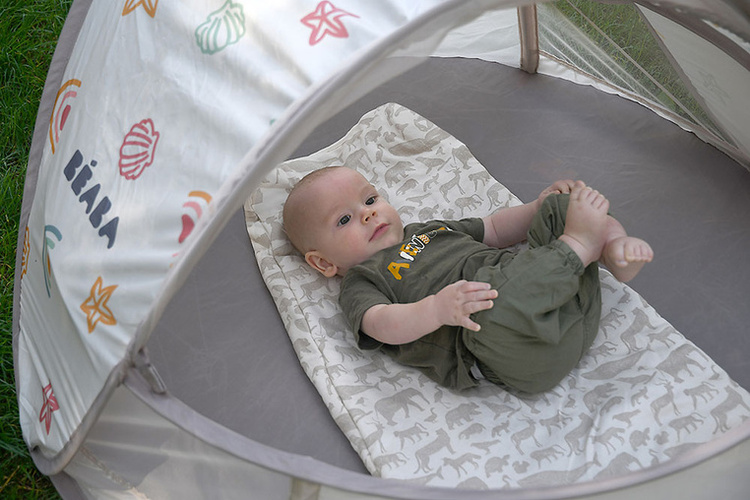 Rozkłada się jedną ręką, błyskawicznie tworząc przytulną, osłoniętą przestrzeń do zabawy, odpoczynku czy drzemki. Może również służyć jako basen z piłeczkami. Dzięki powłoce z filtrem UPF 50+, namiot zapewnia maksymalną ochronę przeciwsłoneczną dla niemowląt i małych dzieci (0–24 mies.), skutecznie blokując 98% promieniowania UV.