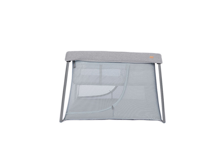 Łóżeczko zostało wykonane z solidnej, oddychającej siatki, która umożliwia również stały podgląd na dziecko. Posiada szerszy, miękko wykończony brzeg i stabilną konstrukcję z rozstawionymi nóżkami. Wszystkie tkaniny mają certyfikat Oeko-Tex 100. Pokrycia są zdejmowane do prania (w 40ºC), co ułatwia utrzymanie łóżeczka w czystości. Oba materace i stelaż można przy tym myć ręcznie. Łóżko jest utrzymane w neutralnych i uniwersalnych odcieniach szarości, dzięki będzie pasować do każdego wnętrza. Bardzo prosto się składa i rozkłada (w kilka sekund), ponadto jest lekkie i mieści się w poręcznej, łatwej do przenoszenia torbie transportowej (w zestawie).