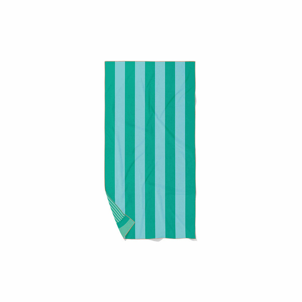 Jedną ze stron zdobią szerokie poprzeczne pasy, druga natomiast przedstawia ciekawą grafikę inspirowany Safari (drogi, dzikie zwierzęta, rzeki itp.). Co więcej, ręcznik może też pełnić rolę ponczo – posiada dwa wygodne zapięcia na zatrzask, pętelkę do zawieszenia np. na haczyku. Ręcznik zachwyca jakością wykonania i niebanalnym designem, utrzymany jest w odcieniach koloru turkusu i niebieskiego z kontrastową lamówką.