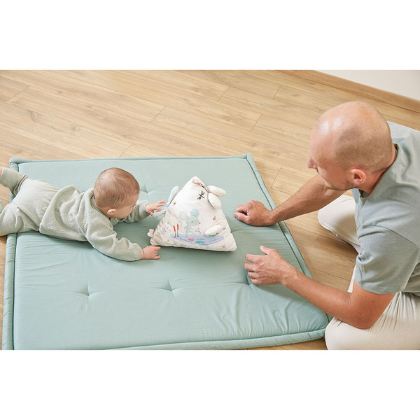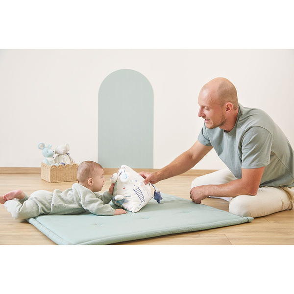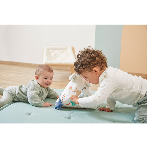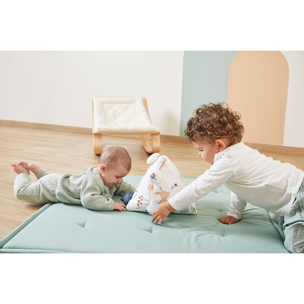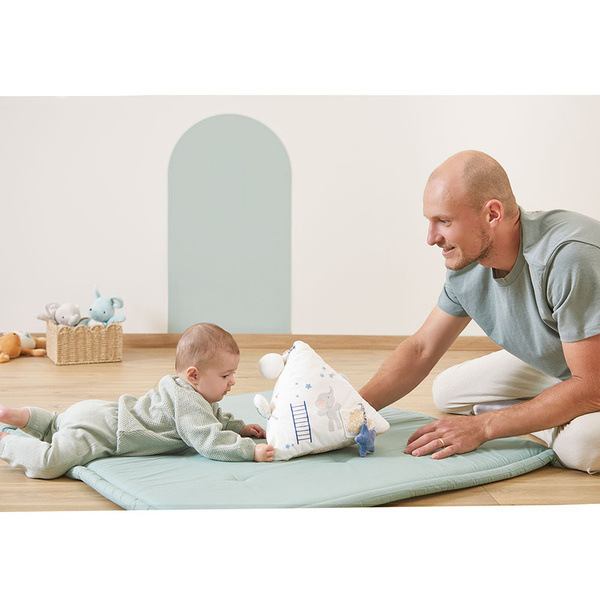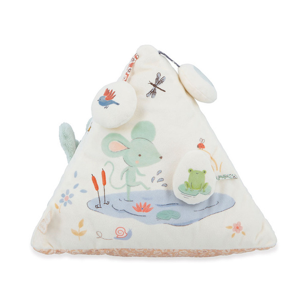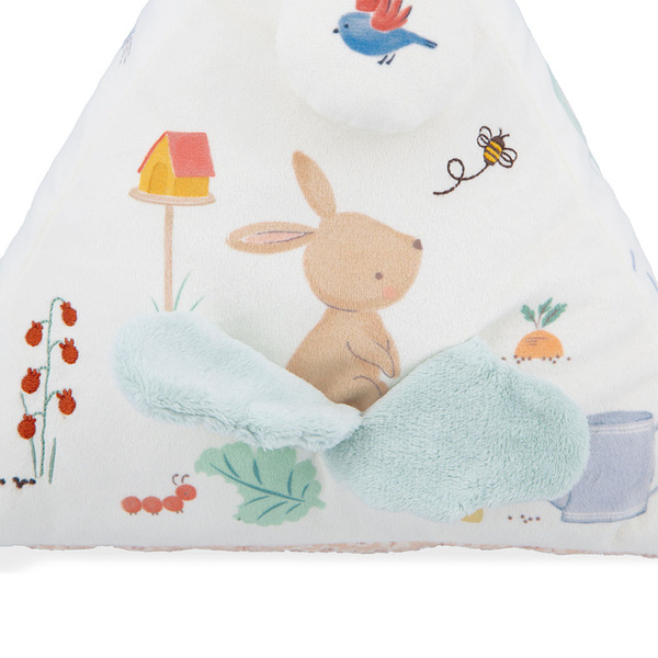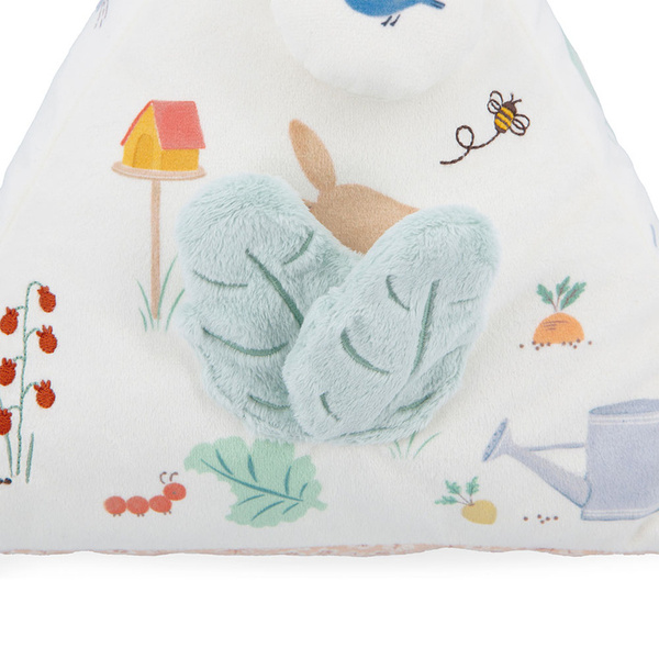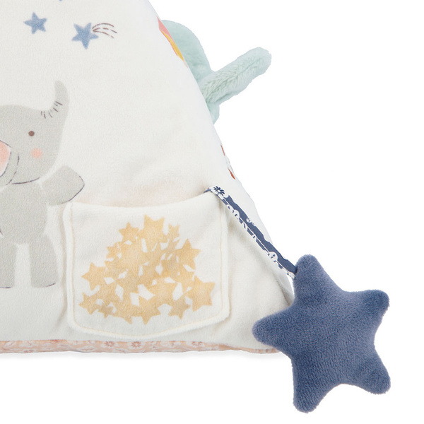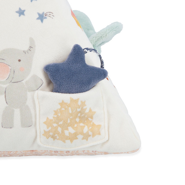 Miękka, sensoryczna piramida francuskiej marki KALOO to idealna zabawka dla Twojego maluszka, bezpieczna już od pierwszych dni życia. Każda ze stron piramidy kryje inne aktywności stymulujące zmysły: wzrok, dotyk, słuch oraz zdolności motoryczne maluszka – 4 rodzaje grzechotek, okienko peek a boo, elementy szeleszczące przy pocieraniu oraz kieszonkę. Dodatkowo każdą z trzech ścianek zdobi inna ciekawa historia zachęcająca do snucia własnych opowieści – o króliczku w ogrodzie, o zielonej myszce i o mrugających gwiazdkach.