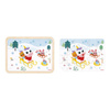 Drewniane puzzle Góry francuskiej marki JANOD to wspaniała układanka dla dziecka od 3. roku życia. Zestaw składa się z 24 drewnianych puzzli i podstawki z ramką, ułatwiającej ich układanie. Na ułożonym obrazku i na planszy pod spodem znajduje się ta ilustracja, przedstawiająca zjeżdżanie na saniach po zaśnieżonych pagórkach – różnią się one od siebie 5 szczegółami, które należy odnaleźć.