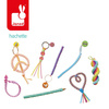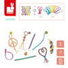 Zestaw kreatywny Ozdoby z żyłek filofun Scoubidou francuskiej marki JANOD pozwala stworzyć 8 różnych ozdób: breloczków, etui na długopis czy bransoletek. Zawiera 50 żyłek w różnych kolorach, 3 metalowe kółka do breloczków, 10 kółeczek jubilerskich, 28 zawieszek i 1 koralik w kształcie gwiazdki. Sznurki można pleść wg wzorów, zamieszczonych w dołączonej instrukcji, tworząc oryginalne kolorowe przestrzenne dekoracje. Technika ta to dla dziecka długie godziny angażującej i jednocześnie uspokajającej zabawy, a gotowe dzieła mogą jeszcze długo służyć lub stać się podarunkami dla bliskich.