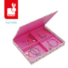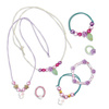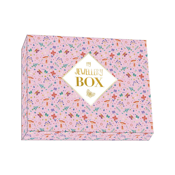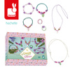 Zestaw kreatywny My jewellery box Wróżki francuskiej marki JANOD pozwoli stworzyć w sumie aż 7 sztuk ozdób: 2 naszyjniki, 3 bransoletki i 2 pierścionki. W jego skład wchodzi wiele koralików różnej wielkości, kolorów i kształtów, 4 zawieszki: 2 grzybki i 2 liście, a także dwie kolorowe nitki (fioletowa i ciemnozielona), pleciony sznureczek oraz elastyczna nitka. Opakowanie jest jednocześnie piękną szkatułką z czterema przegródkami wewnątrz, w której można przechowywać wykonaną biżuterię.