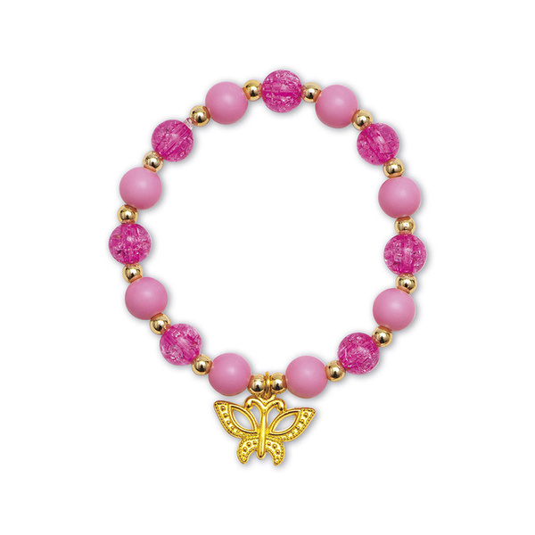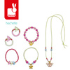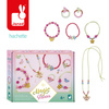 Zestaw kreatywny do tworzenia biżuterii Wróżki francuskiej marki JANOD pozwoli stworzyć w sumie aż 6 sztuk ozdób: naszyjnik, 3 bransoletki i 2 pierścionki. W jego skład wchodzi wiele koralików w różnych kształtach i kolorach (m.in. w kształcie motyli), a także jasnozielony sznurek, biała elastyczna nitka oraz 3 metalowe zawieszki-motyle.