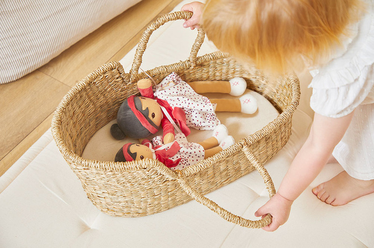 Urocza lalka-przytulanka Emilie francuskiej marki KALOO to idealna pierwsza przyjaciółka Twojego maluszka. Jest niezwykle miękka, piękna, perfekcyjnie wykończona i przede wszystkim całkowicie bezpieczna dla dziecka już od pierwszych dni jego życia. Ma słodką minkę, urocze, duże ciemnobrązowe oczy, stylowy kok i ciepły odcień skóry. Nosi rozkloszowaną sukienkę z białym dołem w serduszka, czerwoną welurową bluzkę i opaskę, a na nóżkach ma białe buciki z czerwonym haftem. Na wstążce pod szyjką lalki znajdziesz miejsce na imię Twojego dziecka, by uczynić tę maskotkę jeszcze bardziej wyjątkową. Jest poręczna – ma 25 cm – dla małych rączek. Stworzona do tulenia, usypiania, uspokajania, zabierania na spacery i na dłuższe wyprawy.