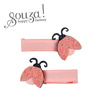 Komplet dwóch spinek do włosów z biedronkami Vere holenderskiej marki Souza! Na każdej z nich znajduje się brokatowa aplikacja – różowa biedroneczka z czarnymi czułkami. Metalowa część spinek pokryta jest jasnoróżowym materiałem (rypsową wstążką). Ząbkowane zaciski sprawiają, że ozdoby stabilnie trzymają się włosów. Idealne zarówno na przyjęcia, jak i na co dzień. Nadają się także na prezent.