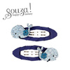 Komplet dwóch spinek do włosów z brokatowymi wielorybami Verle holenderskiej marki Souza! Na każdej z nich znajduje się brokatowa aplikacja – jasnoniebieski wieloryb. Metalowa część obciągnięta jest wokół granatowym materiałem. Zaciski na klik sprawiają, że ozdoby stabilnie trzymają się włosów. Idealne zarówno na przyjęcia, jak i na co dzień. Nadają się także na prezent.