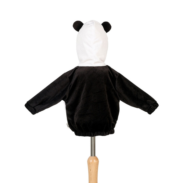 Kostium bluza z kapturem panda Po holenderskiej marki Souza! to przepiękne uzupełnienie lub samodzielne przebranie dla dziewczynek lub chłopców. Wykonany jest z biało-czarnego aksamitu, posiada naszyty pyszczek pandy na brzuszku i czarne uszka na kapturze. Przebranie posiada dodatkowe wypełnienie w brzuszku, co nadaje jej pełniejszego kształtu. Jest miękkie, przyjemne w dotyku i komfortowe do noszenia. Wkładane przez głowę i zapinane pod szyją na rzep. Nadaje się także na prezent.
