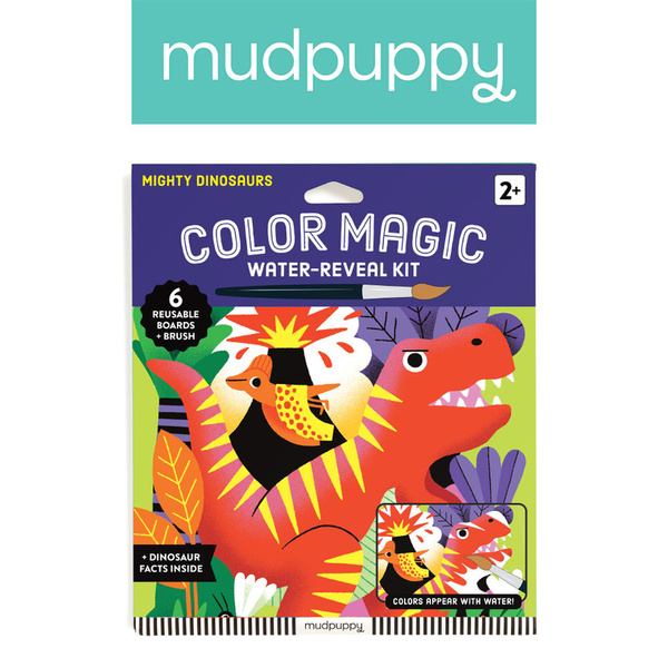 Zestaw kreatywny Kolorowanka wodna Potężne dinozaury amerykańskiej marki MUDPUPPY to świetna angażująca, rozwijająca i uspokajająca zabawka dla maluchów. W zestawie znajduje się 6 plansz z ilustracjami przedstawiającymi prehistoryczne stworzenia oraz pędzelek. Co więcej, w zestawie znajdziemy ciekawostki o dinozaurach! Po uprzednim namoczeniu pędzelka w wodzie i przyłożeniu go do obrazka, na ilustracji „magicznie” pojawiają się kolory. Znikają one chwilę po wyschnięciu, dzięki czemu obrazki można kolorować wielokrotnie. Zabawka zachwyca, zaskakuje i rozbudza wyobraźnię. Idealnie nadaje się na prezent.