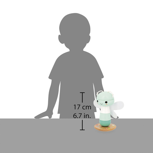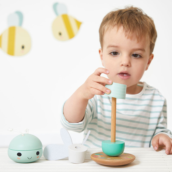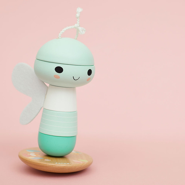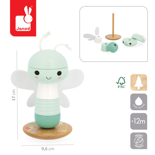 Układanka drewniana piramida Ważka z serii Pure francuskiej marki JANOD to kreatywna zabawka dla dzieci od 1. roku życia. Na szerszej drewnianej podstawce znajduje się drążek, na którym należy umieszczać klocki (5 elementów) w odpowiedniej kolejności – tak, aby stworzyć uroczą miętową ważkę z filcowymi skrzydełkami i czułkami ze sznurka. Zabawka rozwija u dziecka wiele kluczowych umiejętności, m.in. chwyt i koncentrację. Zaprojektowana została we Francji. Jest zapakowana w estetyczne kartonowe pudełko. Idealnie nadaje się na prezent.