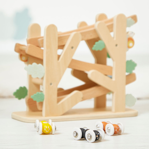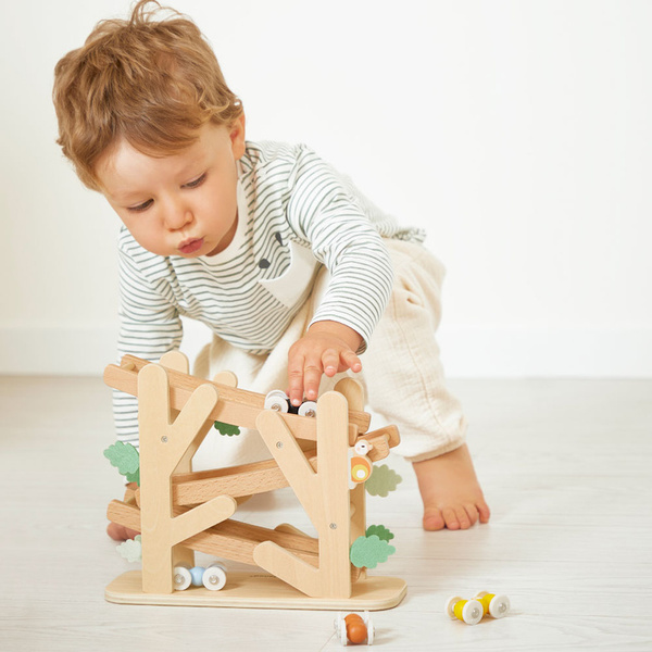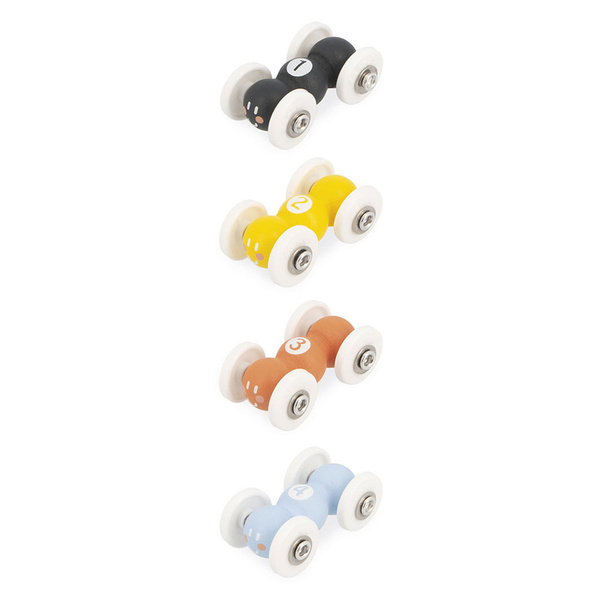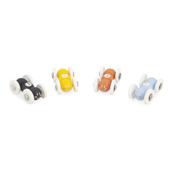 Drewniany kulodrom Mrówki z serii Sweet Cocoon francuskiej marki JANOD to idealna zabawka dla dzieci od 1. roku życia. Zestaw składa się z trzypiętrowej rampy-gałązek, po której można puszczać mrówki-pojazdy, aby toczyły się w dół. Cztery mróweczki w różnych kolorach mają poręczną wielkość i są wygodne do trzymania w małych rączkach. Przy dolnej platformie znajduje się dzwoneczek, którego przyjemny dźwięk informuje, że pojazd dotarł do celu. Zabawka została zaprojektowana we Francji. Zapakowana w estetyczne, kartonowe pudełko. Idealnie nadaje się na prezent.