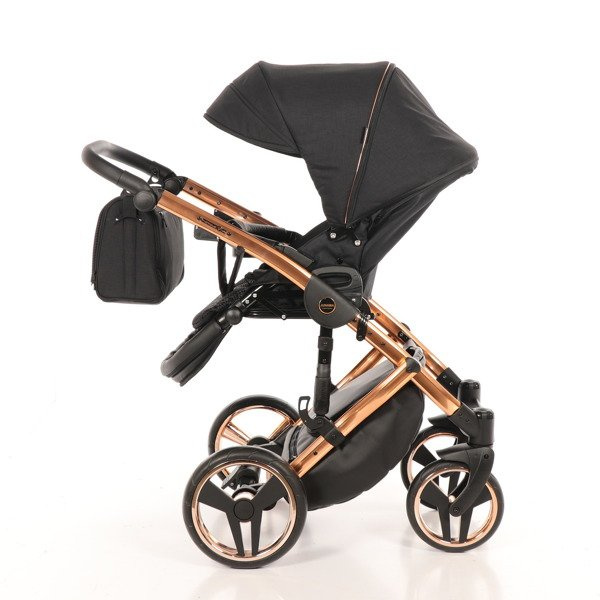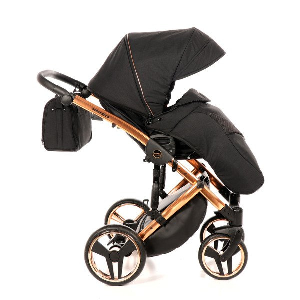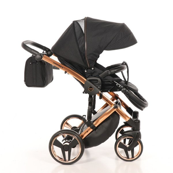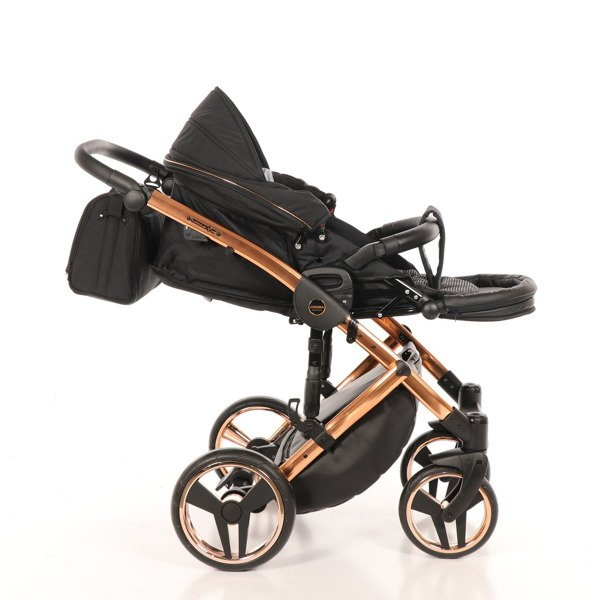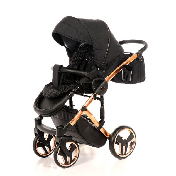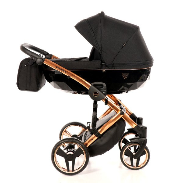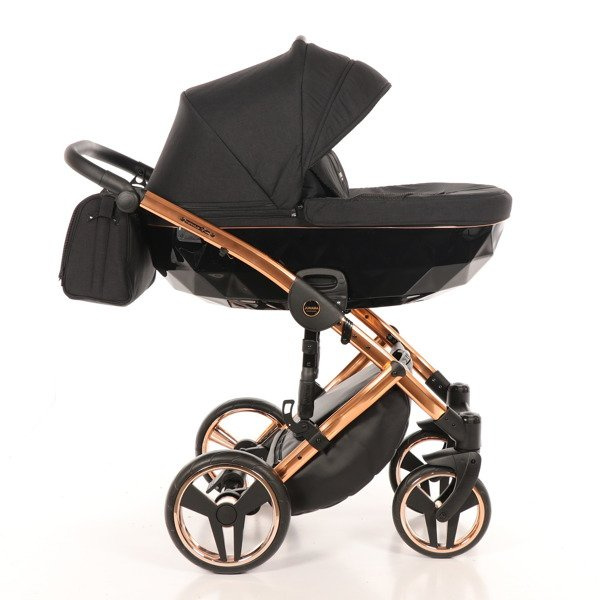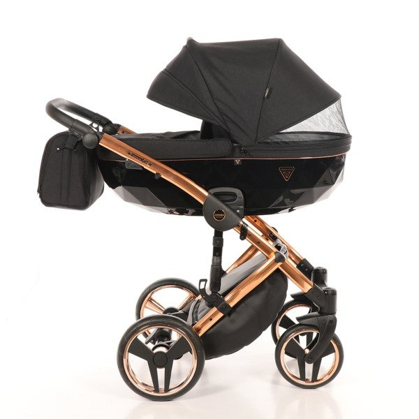 Tako Junama Diamond Individual wózek głęboko spacerowy o nowoczesnym i oryginalnym designie. Na szczególną uwagę zasługuje dół gondoli, który inspirowany jest szlifem diamentu. Prezentuje się on bardzo imponującą, błyszczące dno gondoli oraz obszycia z ekoskórki dodają mu szyku i elegancji. Wszystkie amortyzowane koła poradzą sobie na każdym terenie, a dodatkowa amortyzacja w ramie wózka sprawi, że spacery będą jeszcze przyjemniejsze dla nas i maluszka, ponieważ powstrzymają wstrząsy oraz zapewnią lekkość w prowadzeniu.