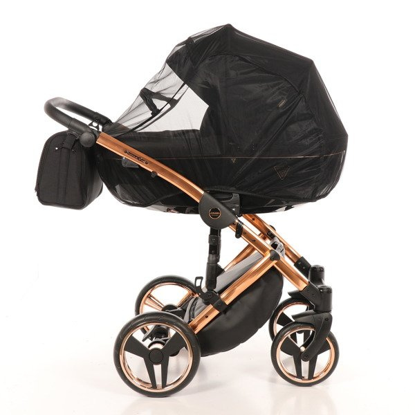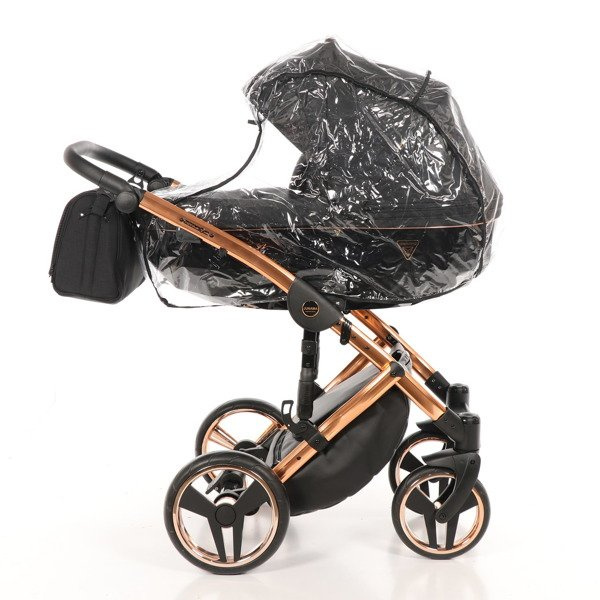 Do Wózka Junama Diamod Individual dołączone są akcesoria: Torba z przewijakiem dobrana do kolorystyki wózka, osłona na nóżki do wersji spacerowej i gondoli, moskitiera, folia przeciwdeszczowa, uchwyt na kubek.