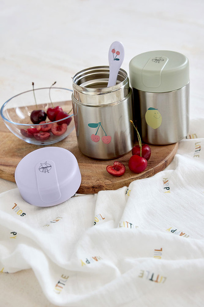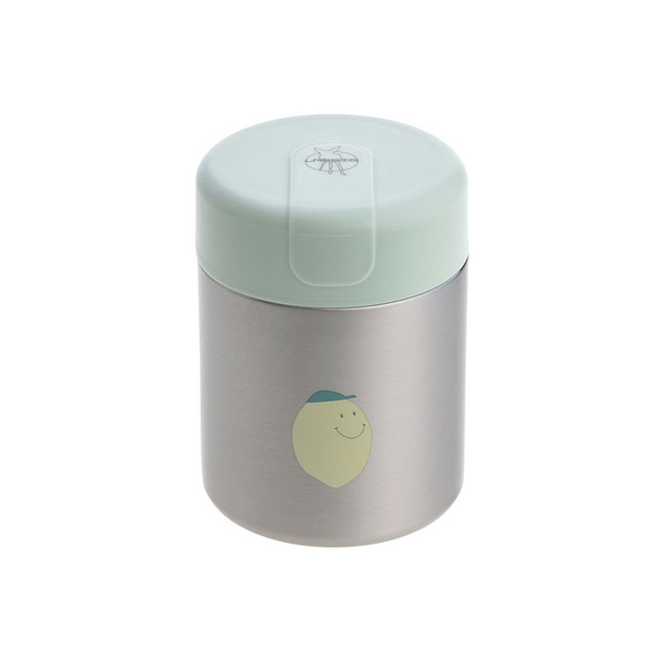 Pojemnik-termos obiadowy niemieckiej marki LASSIG przyda się nie tylko podczas podróży, ale także spacerów czy wycieczek. Ma pojemność 315 ml, jest lekki, poręczny i wytrzymały – dzięki podwójnym ściankom ze stali nierdzewnej długo zachowuje temperaturę posiłków, zarówno gorących, jak i zimnych. Szeroki otwór ułatwia napełnianie, podawanie jedzenia i czyszczenie. Hermetyczna jasnozielona pokrywka posiada dodatkową silikonową uszczelkę, zapewniającą szczelność naczynia. Pojemnik ma ergonomiczny kształt – zmieści się do plecaka, torebki czy bocznej kieszonki. Ma srebrny kolor z motywem uśmiechniętej cytrynki. Stanowi część większej kolekcji Happy Fruits. Możesz dobrać do niego inny produkt w tej samej gamie kolorystycznej lub z tym samym motywem.