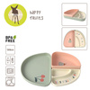 Komplet silikonowych naczyń z niemieckiej marki LASSIG. W jego skład wchodzi spory talerz oraz dwie (mieszczące się w nim) miseczki: wyższa i niższa – dwudzielna, idealna np. na przekąski. Stworzone z najbezpieczniejszego silikonu, który jest praktyczny, hipoalergiczny i wyjątkowo odporny na zniszczenia (nie rysuje się i nie przebarwia). Dobrze przywiera do każdej gładkiej powierzchni, jest lekki i stabilny. Naczynia mają estetyczny i atrakcyjny dla malucha wygląd: talerz w kształcie tęczy jest pastelowo zielony z motywem uśmiechniętych wisienek na spodzie, miski (połówki tęczy) zaś: różowa z motywem gruszki i kremowa z kolorowym napisem HAPPY LITTLE SOUL. Wyższe brzegi ułatwiają nabieranie pokarmów, co wspiera rozwój samodzielności dziecka. Zestaw jest odpowiedni już od 6. miesiąca życia. Stanowi część większej kolekcji Happy Fruits. Możesz dobrać do niego inny produkt w tej samej gamie kolorystycznej lub z tym samym motywem.