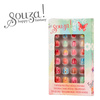 Zestaw sztucznych paznokci dla dzieci Kwiaty holenderskiej marki Souza! Zapakowany w kartonowe pudełko z okienkiem. Zawiera 24 sztuki krótkich, kolorowych tipsów z różnymi – głównie kwiatowymi motywami. Paznokcie są samoprzylepne i bez trudu usuwa się je z płytki (jak naklejki).