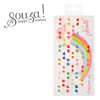 Zestaw kolczyków samoprzylepnych Kwiaty i serca holenderskiej marki Souza! W jego skład wchodzi 70 sztuk (35 par) drobnych kolczyków w różnych kolorach i kształtach – serduszek, kwiatów oraz tęczy.