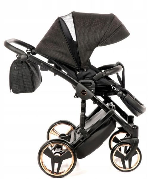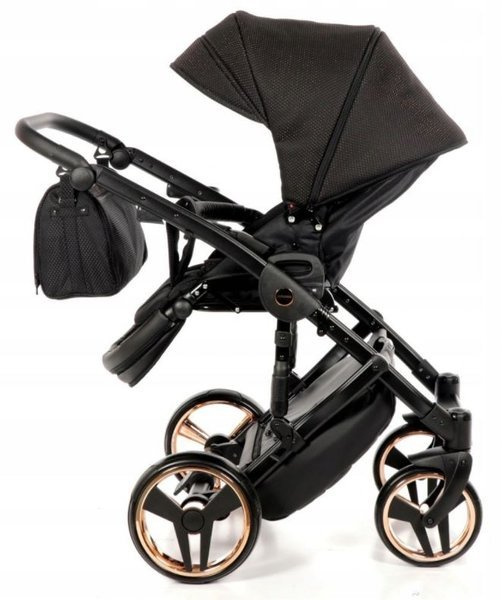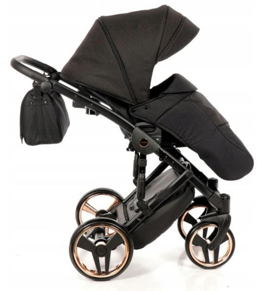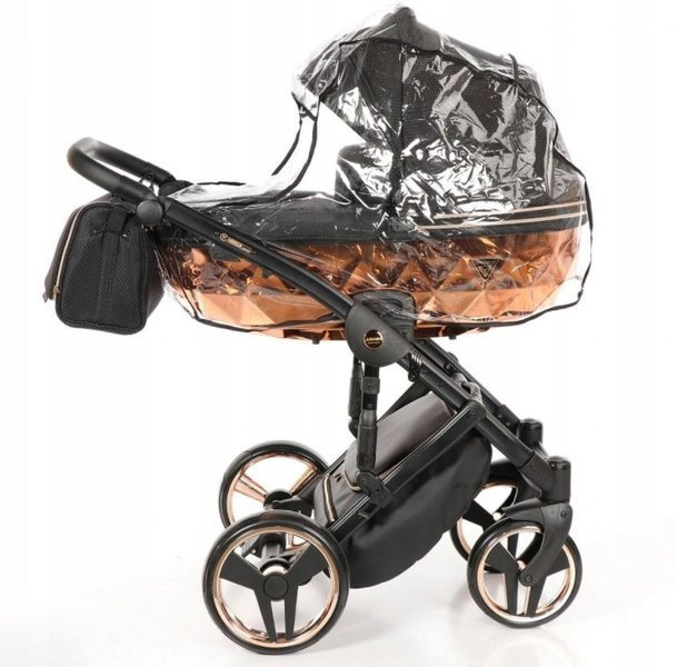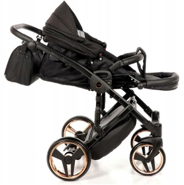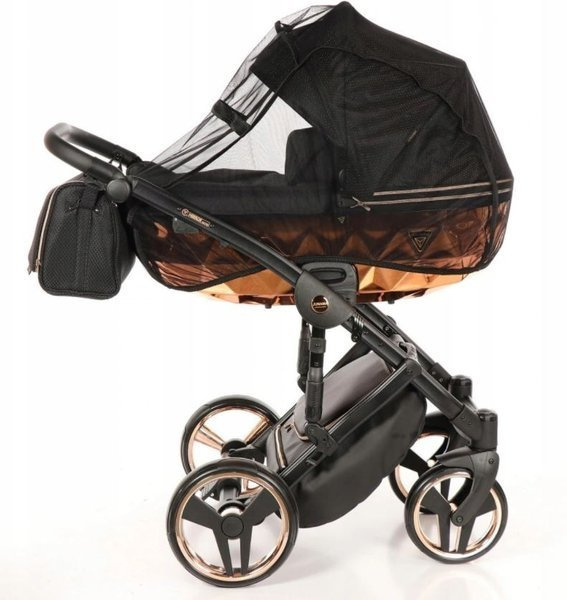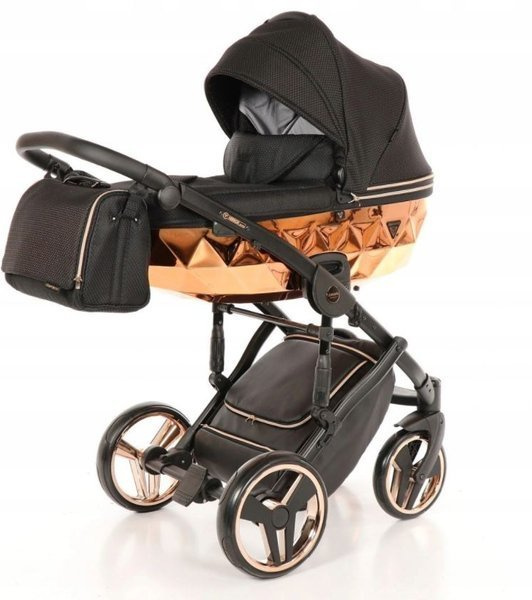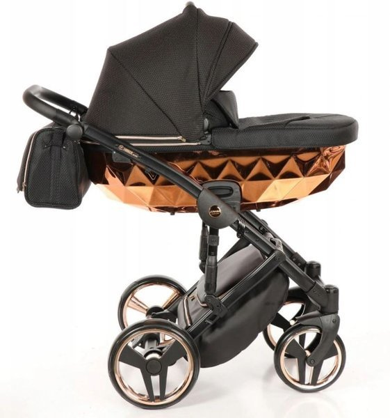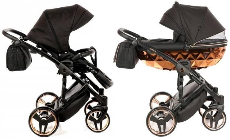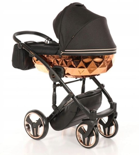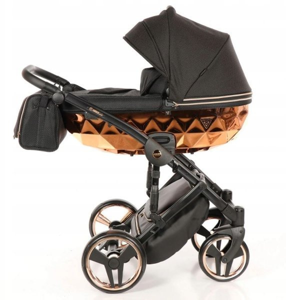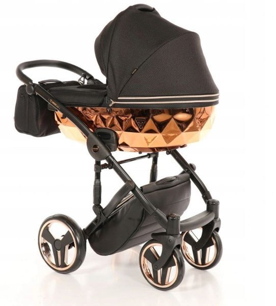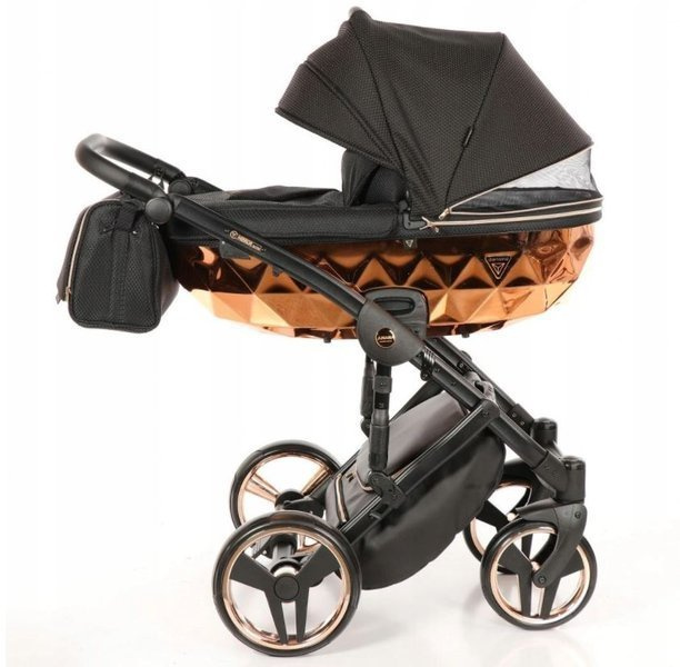 Tako Junama Diamond to wózek głęboko spacerowy o nowoczesnym i oryginalnym designie. Na szczególną uwagę zasługuje dół gondoli, który inspirowany jest szlifem diamentu. Prezentuje się on bardzo imponującą, błyszczące dno gondoli oraz obszycia z ekoskórki dodają mu szyku i elegancji. Wszystkie amortyzowane koła poradzą sobie na każdym terenie, a dodatkowa amortyzacja w ramie wózka sprawi, że spacery będą jeszcze przyjemniejsze dla nas i maluszka, ponieważ powstrzymają wstrząsy oraz zapewnią lekkość w prowadzeniu.