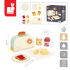 Zestaw zawiera drewniany toster/opiekacz z guziczkiem i pokrętłem oraz 12 akcesoriów, w tym: