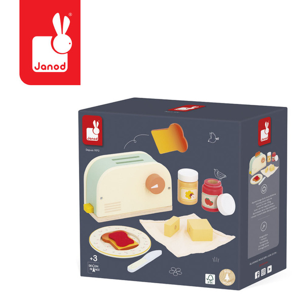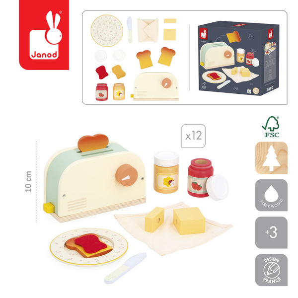 Drewniany zestaw śniadaniowy z kolekcji Shiny Grandma francuskiej marki JANOD sprawi mnóstwo radości każdemu dziecku. Sprawdzi się zarówno jako samodzielna zabawka, jak i uzupełnienie każdej dziecięcej kuchni, inspirując do kreatywnej zabawy w gotowanie.