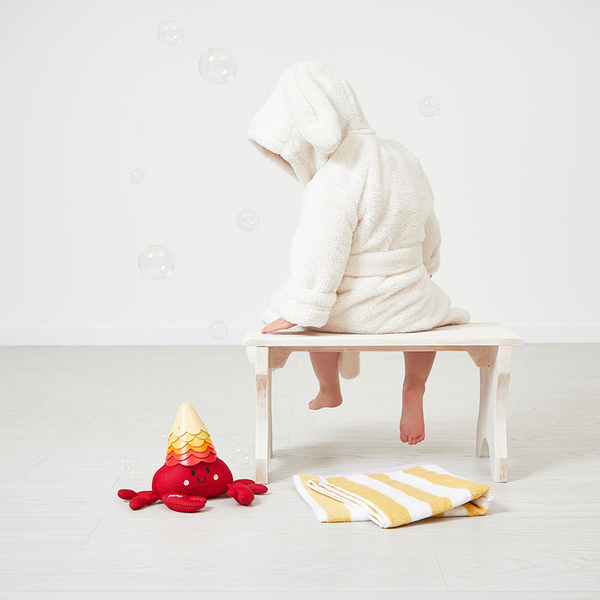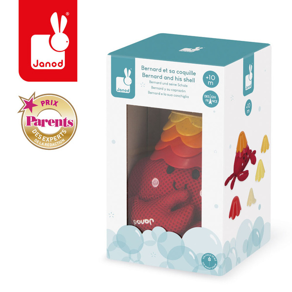 Gąbka do kąpieli Krab z muszelkami francuskiej marki JANOD to wielofunkcyjna zabawka, która umili maluszkowi czas spędzony w wodzie. W zestawie znajduje się duży, miękki krab, który może też pełnić rolę gąbki do mydlenia i mycia oraz 6 kolorowych muszelek-lejków o różnych kształtach i rozmiarach. Foremki można wkładać jedna w drugą, budować z nich piramidę na krabie, stosować do przelewania wody (każda ma inne otwory, więc i inny strumień) lub wykorzystywać do innych zabaw wodnych. Zabawkę zaprojektowano we Francji. Idealnie nadaje się na prezent.