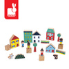Zestaw klocków i figurek z serii Cross Roads francuskiej marki JANOD to doskonałe uzupełnienie maty-dywanu do zabawy z drogą Miasto z tej samej kolekcji. W jego skład wchodzi: