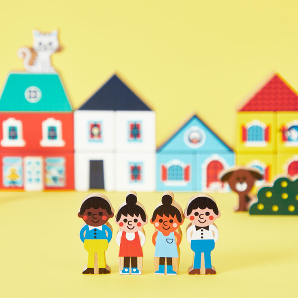 Klocki wykonane są z drewna, posiadają poręczne kształty dopasowane do małych rączek i piękne kolory. Zachęcają malucha do snucia własnych historii i kreatywnej zabawy.