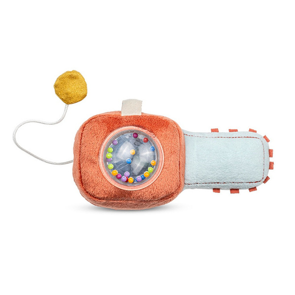 Grzechotka-piła łańcuchowa z kolekcji Lew Jack belgijskiej marki Lilliputiens to aktywizująca zabawka dla niemowląt. Ma postać pluszowej piły łańcuchowej z naszywką lwa w kasku. Potrząsana wydaje przyjemny dla ucha dźwięk (na boku ma okienko z kuleczkami), a po pociągnięciu za sznurek – wibruje. Jest poręczna i wykonana z różnorodnych materiałów, co dodatkowo stymuluje sensorycznie. Zabawka rozwija małą motorykę (chwytanie, potrząsanie, pociąganie), aktywizuje zmysł słuchu (grzechotka, wibracje), wzroku i dotyku (m.in. wypustki, imitujące łańcuch).