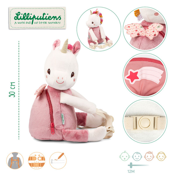 Uroczy miękki plecaczek w kształcie Jednorożca Leny belgijskiej marki Lilliputiens. Funkcjonalny, lekki i wygodny. Idealny dla maluchów, do przedszkola i na krótkie wycieczki. Jest zapinany na suwak, ma łapki z szelkami z regulacją długości oraz dodatkowy pasek stabilizujący i odciążający plecy, zapinany na łatwy w obsłudze zatrzask. A także kolorową grzywę, róg i malutkie skrzydełka. Plecak uszyto z wysokiej jakości materiałów. Jest perfekcyjnie wykończony, z dbałością o każdy szczegół i w pełni bezpieczny dla dziecka.