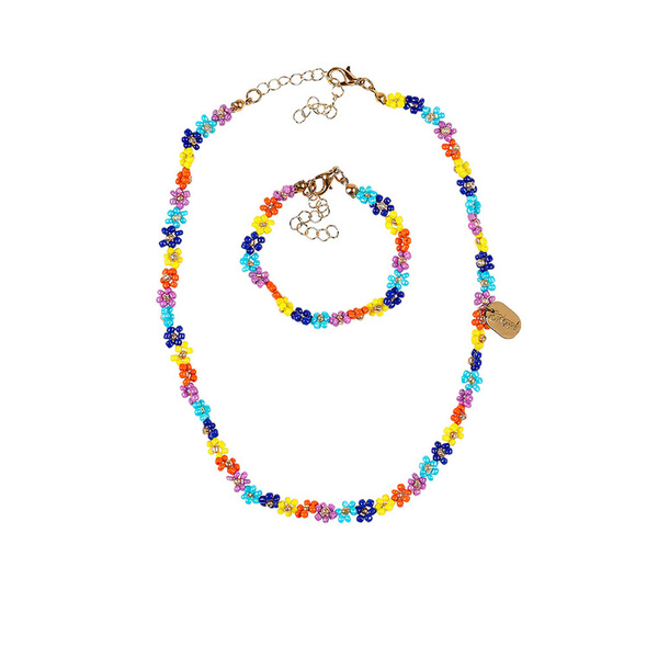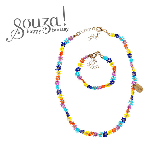 Naszyjnik i bransoletka Millie holenderskiej marki Souza! to zestaw biżuterii z kolorowych koralikowych kwiatków. Bransoletka ma 14 cm obwodu, a naszyjnik – 34 cm. Posiadają zapięcia i są wygodne do nakładania. Biżuteria jest nietoksyczna i nie podrażnia skóry. Idealna zarówno na przyjęcia, jak i do noszenia na co dzień. Sprawdzi się także jako stylowy prezent.