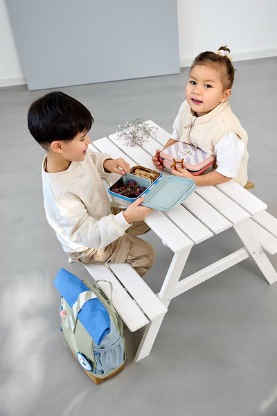 Solidne pudełko śniadaniowe ze stali nierdzewnej niemieckiej marki LASSIG przyda się nie tylko do szkoły, ale również podczas rodzinnych spacerów i wycieczek. Jest pojemne i posiada ruchomą, wyjmowaną przegrodę, dzięki której można je podzielić na dwie części, np. większą na kanapki, a mniejszą na owoce, krojone warzywa czy inne przekąski. Pudełko jest szczelne (ma silikonową uszczelkę) i solidne. Szeroki klips, na który jest zamykane, uniemożliwia samoczynne otwarcie. Lunchbox ma ergonomiczny kształt. Zmieści się nawet do małego plecaka.