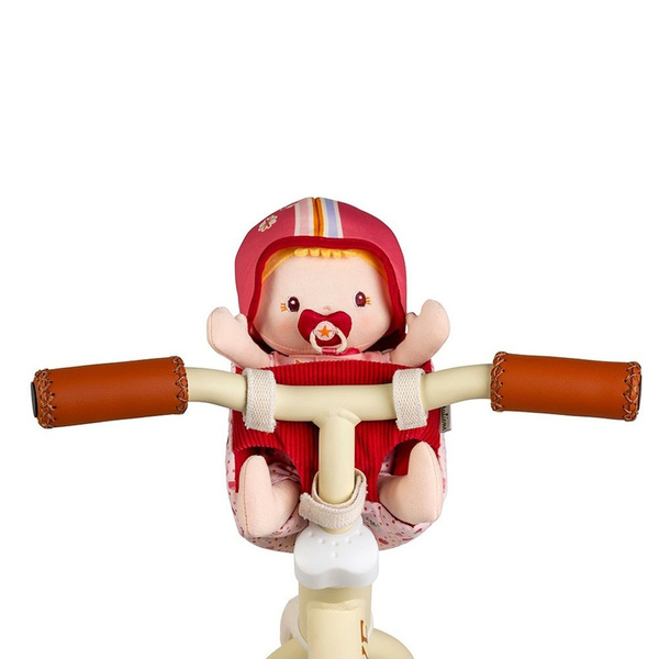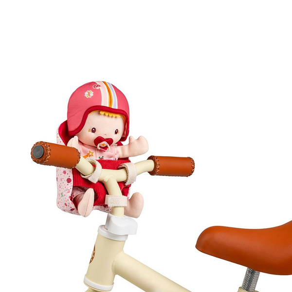Lalka w foteliku rowerowym Lena belgijskiej marki Lilliputiens jest idealna do zabierania na wycieczki rowerkiem lub hulajnogą, tulenia, usypiania czy uspokajania. Laleczka ma poręczne rozmiary – 23 cm, jasną fryzurkę, wygodny strój (zdejmowany ramper w uroczy wzór z przyszytym smoczkiem, który dzięki magnesowi można umieścić przy jej ustach, by nie spadał podczas jazdy) i niezbędne akcesoria: montowany na kierownicy fotelik rowerowy z mocowaniem na rzepy, kamizelkę i kask – idealne, by już od najmłodszych lat uczyć dziecko zasad bezpieczeństwa podczas jazdy.
