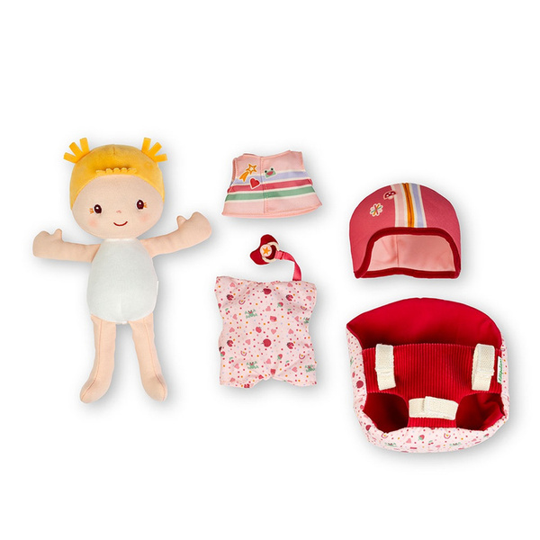 Lena uwielbia wycieczki – zarówno w mieście, jak i na wiejskich ścieżkach. Zabawa z lalką pomaga dziecku rozwijać wyobraźnię, troskliwość i empatię. Laleczka jest perfekcyjnie wykończona, z dbałością o każdy detal, i w pełni bezpieczna dla dziecka. Oczy, nos i buzia lalki są wyszywane.