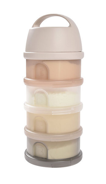 Kompaktowy zestaw 4 pojemników do przechowywania mleka w proszku francuskiej marki BEABA. Półtransparentne pojemniki (ceglany, biały, kremowy i szary) mają pojemność w sumie 440 ml (4x110ml). Zestaw idealny do zabrania mleka w proszku na spacer, podczas podróży czy na nocne karmienia. Każda komora mieści do 11 dawek mleka w proszku. Można w nim odmierzyć porcje nawet na dobę do przodu. Pojemniczki są na tyle szerokie, że łatwo się je napełnia i czyści. Nakręca się je jeden na drugi, ale można ich także używać osobno, w zależności od potrzeb. Dodatkowa nakrętka z wąskim otworem/lejkiem ułatwia przesypanie mleka do butelki. Pokrywka jest hermetyczna i ma wygodny uchwyt do przenoszenia. Pojemniki z czasem mogą również służyć jako poręczne pudełka na przekąski.