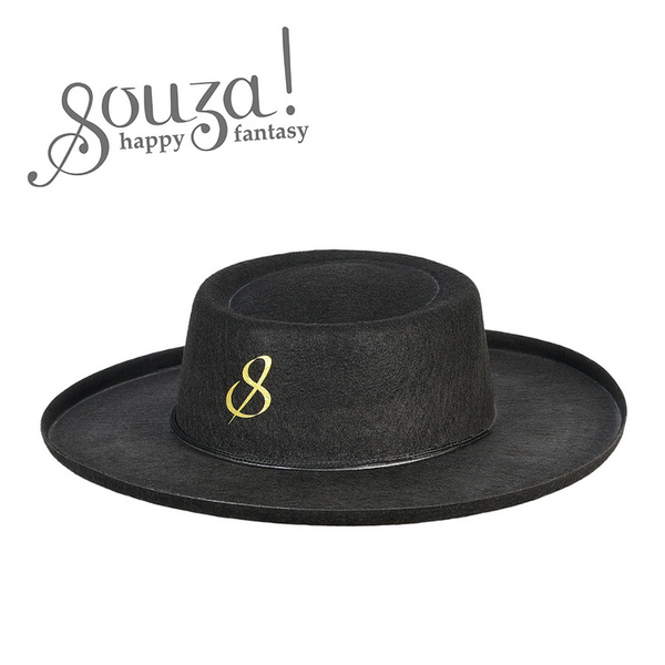 Kapelusz Vega holenderskiej marki Souza! To klasyczny kapelusz muszkietera z szerokim, płaskim rondem o średnicy 30 cm. Nawiązuje do postaci Zorro (Diego de la Vega) i zachwyca detalami – starannym profilowaniem oraz złotym znakiem „&” na froncie. Wykonany z czarnego filcu, jest wygodny i komfortowy w noszeniu. Idealny dodatek do kostiumu bohatera, na przedstawienie, bal przebierańców, Sylwestra czy tematyczne urodziny. Sprawdzi się także jako stylowy prezent.