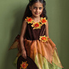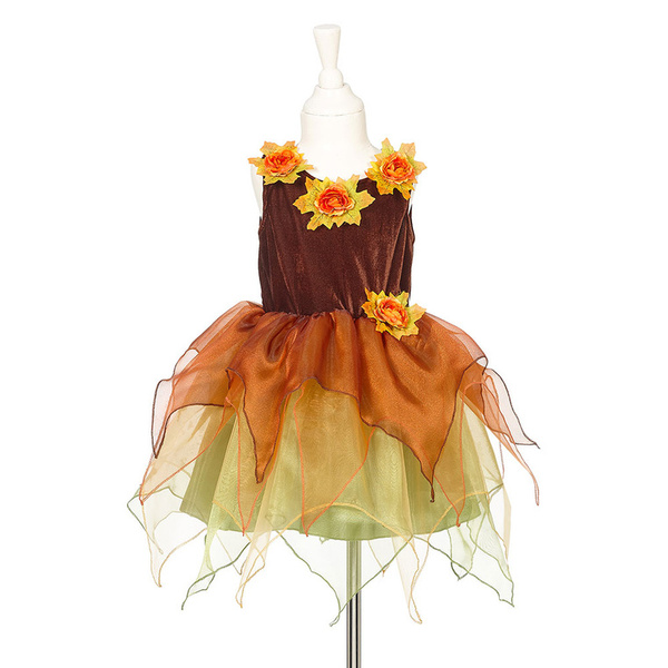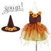 Kostium sukienka z kapeluszem czarownica Sabrina holenderskiej marki Souza! to przepiękne, kunsztownie wykonane przebranie dla dziewczynki. Zachwyca dbałością o detale, ma klasyczny krój i gumkę w pasie, która zapewnia komfort noszenia. Welurowa góra ma rdzawo-brązowy kolor i trzy jesienne kwiaty przy dekolcie. Wielowarstwowy, krótki dół ma jasnozieloną satynową podszewkę oraz ząbkowane tiulowe spódniczki w odcieniach zieleni, żółci i pomarańczu. Kwiat zdobi także pas sukienki oraz szerokie rondo welurowego stożkowego kapelusza, który znajduje się w zestawie. To idealny kostium na bal przebierańców, Halloween czy Sylwestra. Sprawdzi się także jako prezent.