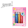 Zestaw trzech brokatowych mascar do włosów dla dzieci holenderskiej marki Souza!. Każde opakowanie zawiera 8,5 ml kolorowego, brokatowego żelu, którym można barwić pasemka na czerwono, niebiesko lub żółto. Mascary posiadają wygodne szczoteczki, ułatwiające precyzyjną aplikację. Zestaw zapakowany jest w estetyczne kartonowe pudełeczko z okienkiem z motywem motyli.
