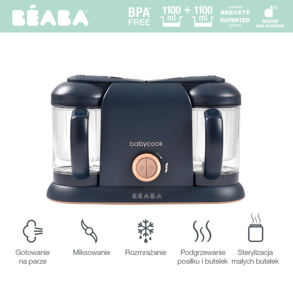 Wielofunkcyjne urządzenia do miksowania i gotowania na parze Babycook® francuskiej marki Beaba w wersji duo, czyli z dwoma dzbankami pozwoli przygotować pełny posiłek dla dziecka – od przystawek przez obiad do deseru – w niespełna 15 minut. Babycook® oferuje 6 funkcji w 1: gotuje na parze, miksuje, rozmraża, podgrzewa posiłki i butelki oraz sterylizuje małe butelki, a do tego jest cichy i łatwy w obsłudze.