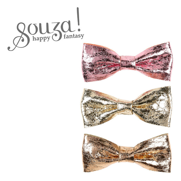 Komplet 3 spinek do włosów Xandi holenderskiej marki Souza! Na każdej znajduje się metaliczna kokarda w innym kolorze: złotym, miedzianym lub różowym. Metalowe, ząbkowane zaciski sprawiają, że ozdoby stabilnie trzymają się włosów. Idealne na przyjęcia i na co dzień. Doskonałe także jako prezent.