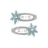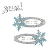 Komplet 2 spinek do włosów Christa holenderskiej marki Souza! Na każdej z nich znajduje się aplikacja brokatowej niebieskiej śnieżynki z kryształkiem na środku. Metalowa część obciągnięta jest wokół srebrną wstążką. Zaciski na klik sprawiają, że ozdoby stabilnie trzymają się włosów. Idealne zarówno na przyjęcia, jak i na co dzień, na zimę, święta czy jako dodatek do stroju Królowej Śniegu. Doskonałe także jako prezent.