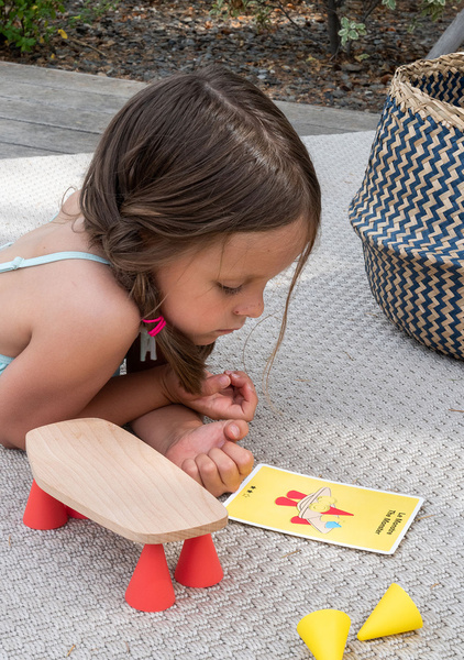 To zabawa w tworzenie portretów. Stożków można używać w niej jako oczu, nosa lub innych elementów twarzy, a także jako rąk, nóg, łap, kolców czy ogonów, deseczki zaś mogą stać się buzią lub ciałem wymyślonej postaci czy zwierzęcia – psa, kota lub nawet... krokodyla!