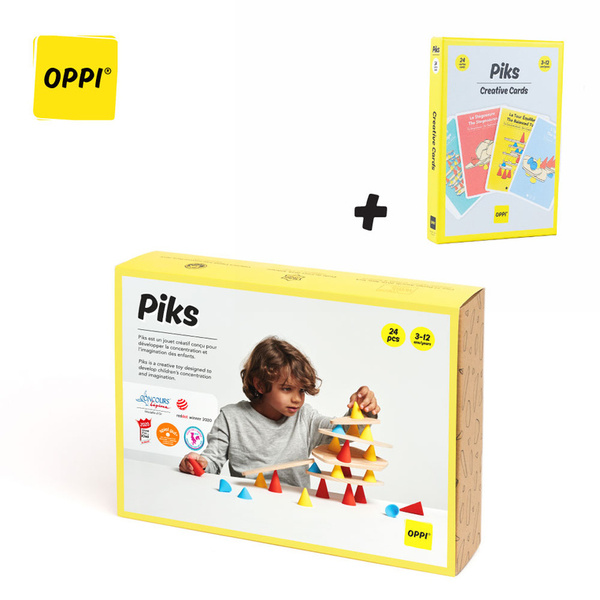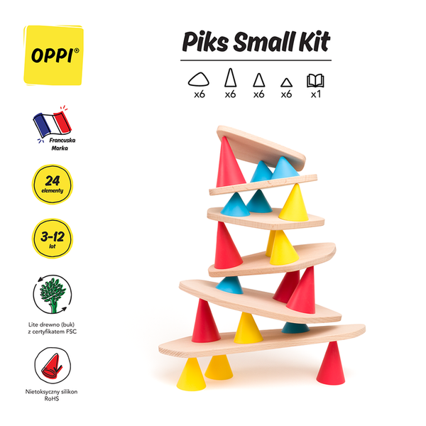 Zestaw konstrukcyjny Piks Small francuskiej marki OPPI to innowacyjna wielofunkcyjna zabawka, przeznaczona do rozwijania koncentracji, zdolności motorycznych i kreatywności u dzieci.