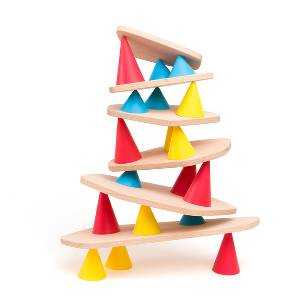 Oryginalne połączenie elementów drewnianych i silikonowych zapewnia przyczepność, która pozwala graczom na zupełnie nowe podejście do zabawy i swobodne eksperymentowanie. Zestaw zapewnia nieograniczoną zabawę, aby każdy mały artysta mógł tworzyć swoje wielopoziomowe, niebanalne i niepowtarzalne konstrukcje.