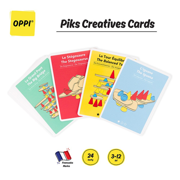 Zestaw 24 kart kreatywnych to przydatny dodatek do zestawów konstrukcyjnych Piks. Karty przeznaczone są do gry edukacyjnej, której celem jest m.in. stymulowanie wyobraźni, ćwiczenia koncentracji i stawianie dzieciom wyzwań.