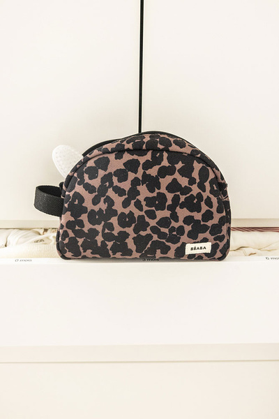 Kosmetyczkę zdobi modny print w lamparcie cętki.